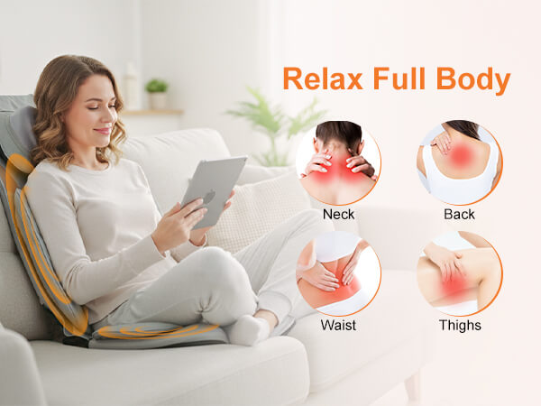 Sink into soothing comfort as the massage mat gently kneads your neck, shoulders, back, and waist—the areas you can’t reach on your own. Feel tension melt away, muscles relax, and stress simply fade.